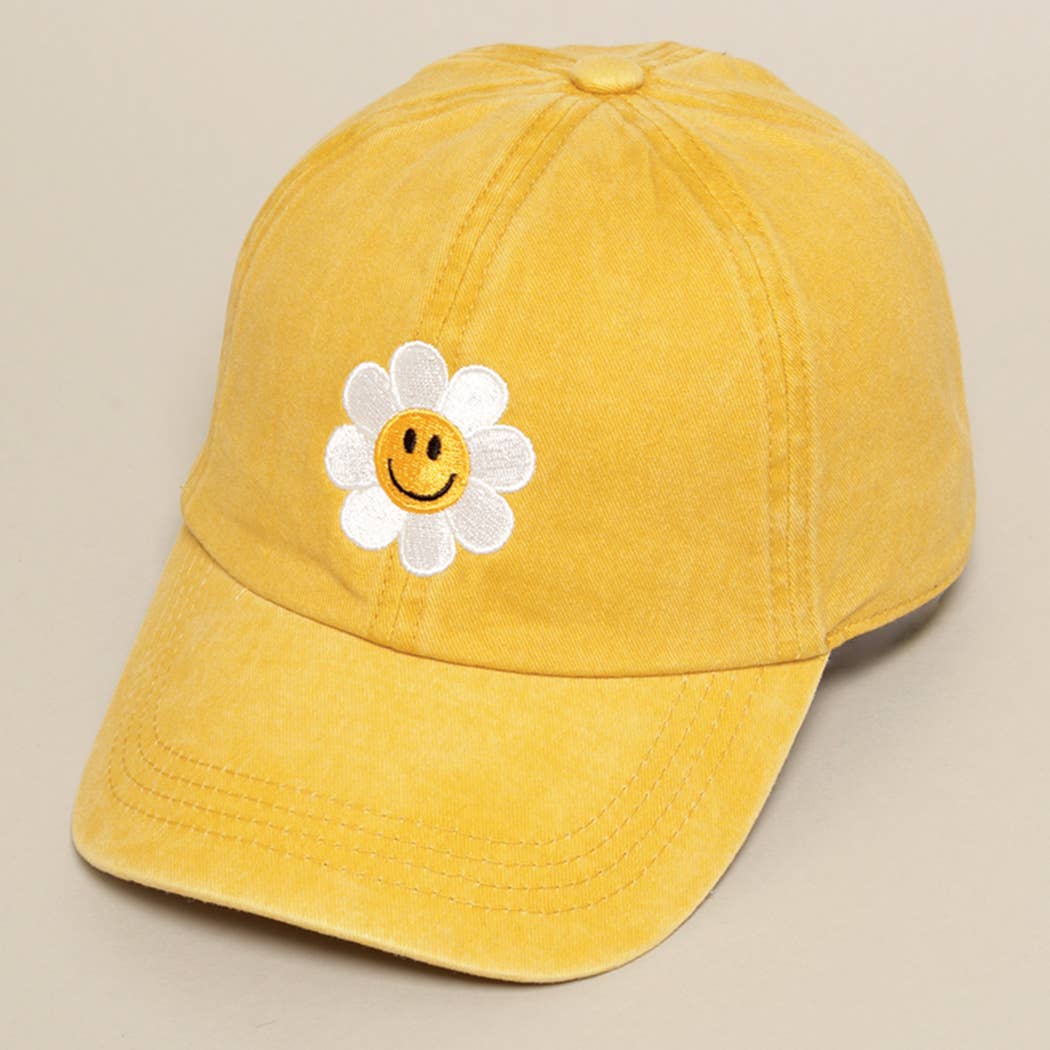 Casquette de baseball brodée Happy Face Flower
