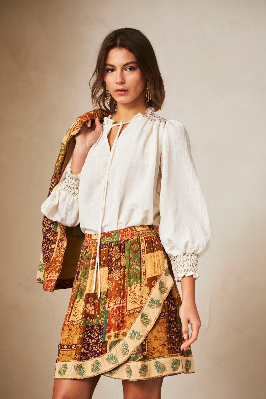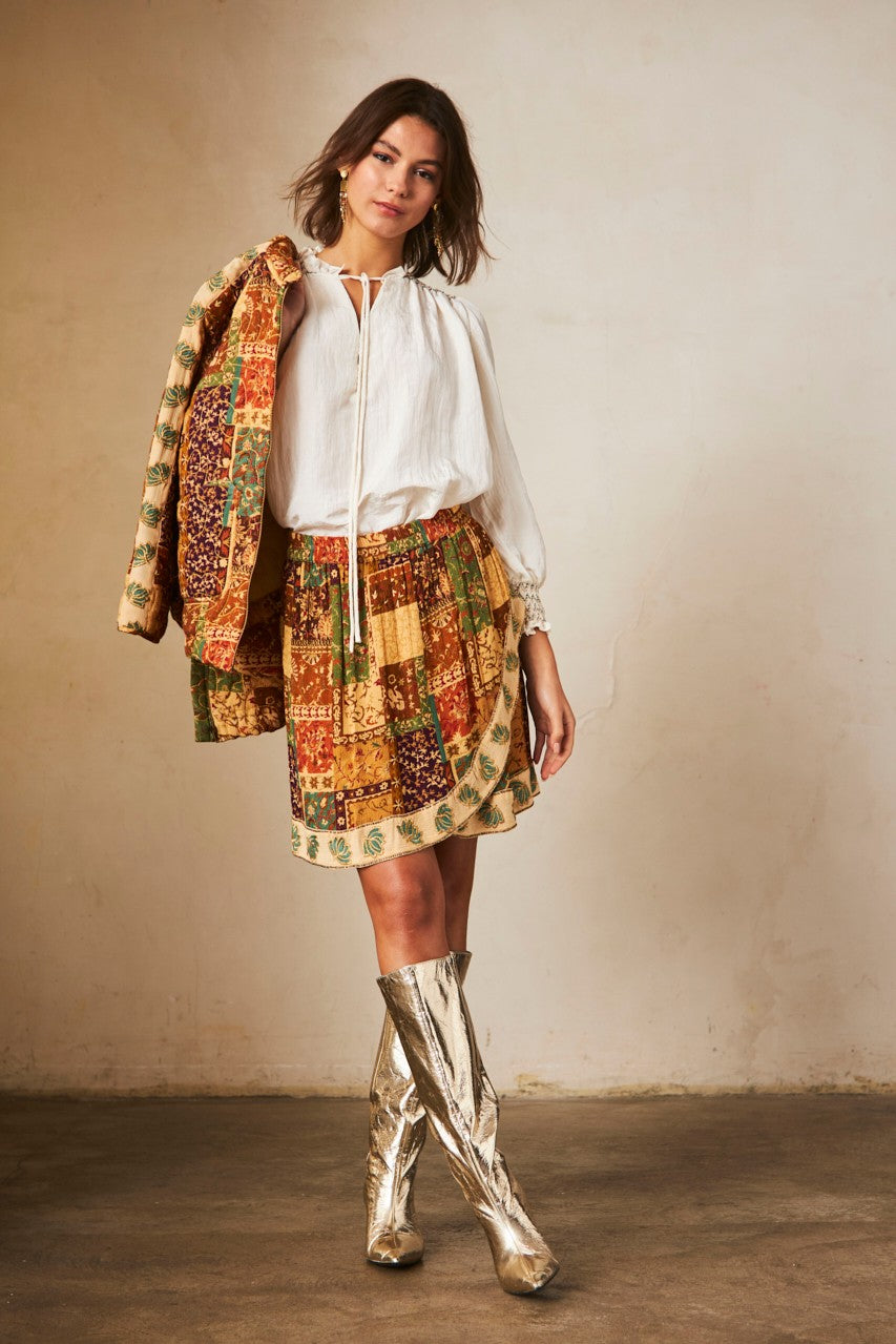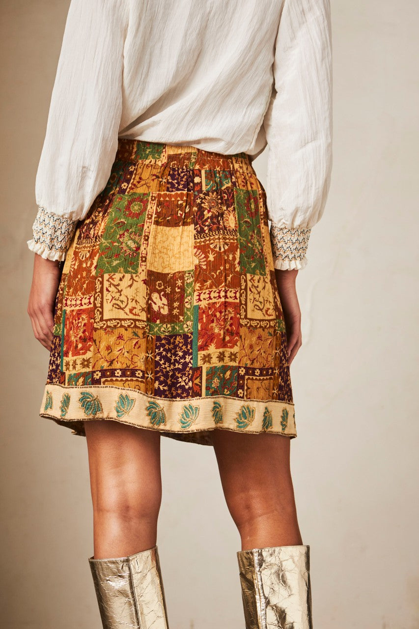 Prix régulier 35,00 €Jupe courte asymétrique avec un combiné d'imprimés. Taille élastique.