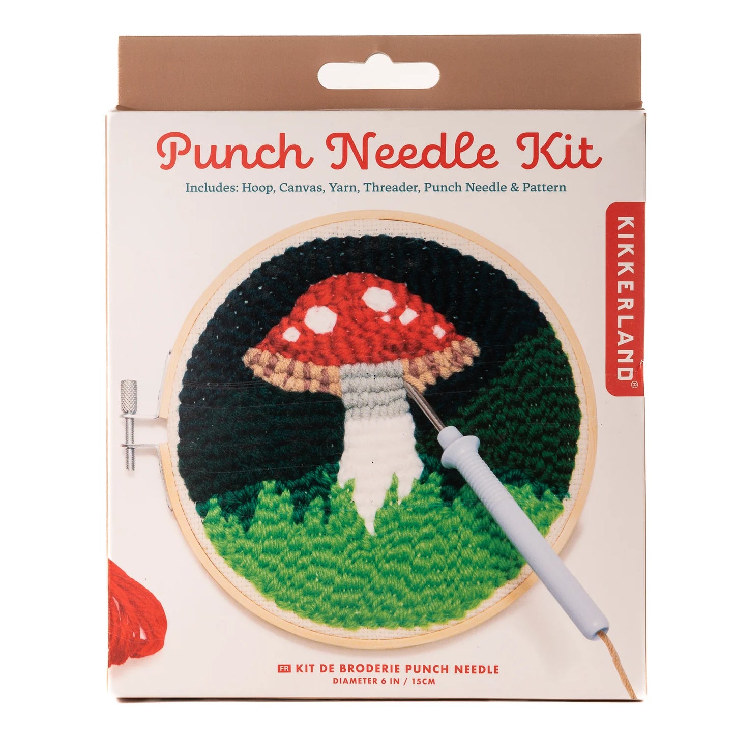 Apprenez l'artisanat traditionnel de l'aiguille poinçonnée ou "rug hooking" et créez votre propre tapisserie miniature. Le kit comprend tout ce qui est nécessaire : 1 cercle en bambou réglable, 1 aiguille à poinçonner, 1 enfile-aiguille, 1 tissu en coton avec un gabarit imprimé, et beaucoup de fil pour terminer le motif. Idéal pour les débutants !